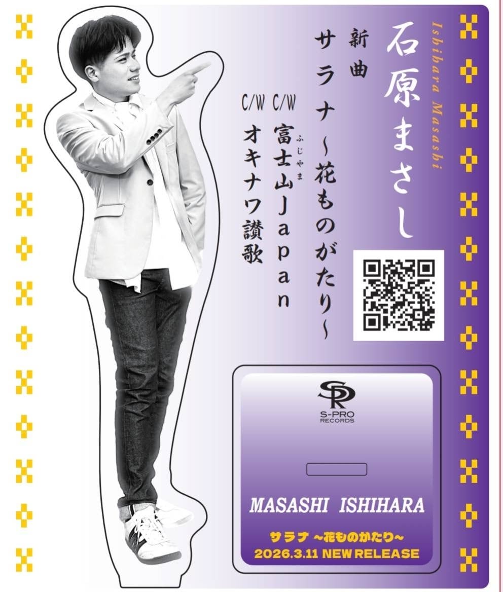 石原まさし5thシングル発売を記念して制作した アクリルスタンド【サラナ〜花ものがたり〜ver】。