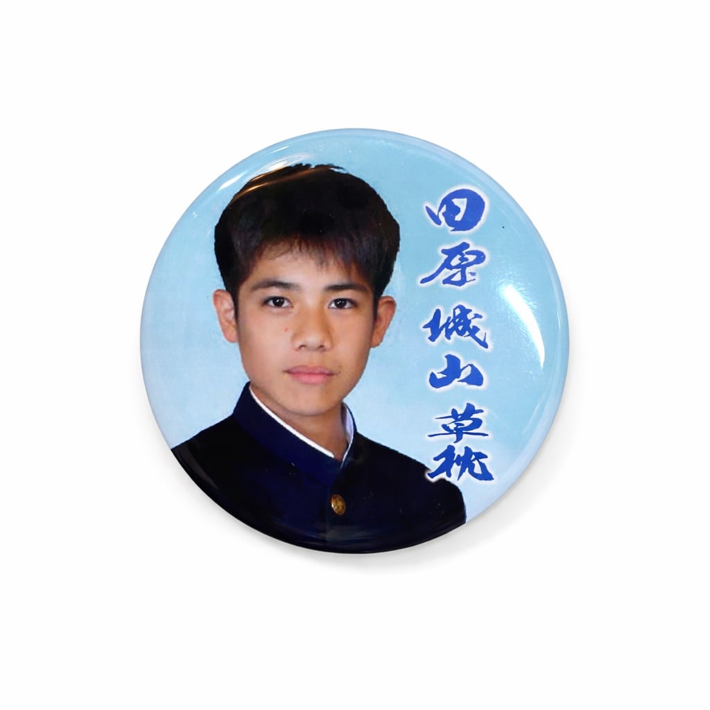 石原まさしデビューシングル【田原 城山 草枕】バージョンの缶バッジです。